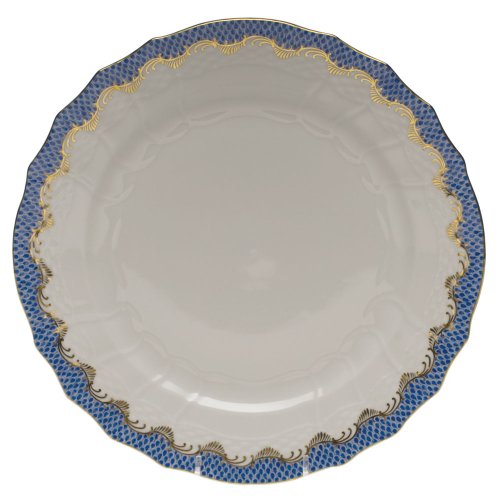 Studio : Herend Publisher : Herend Product Description The fish scale border comes in six colors: blue - raspberry - brown - rust and two shades of green (yellow green to complement Queen Victoria and Rothschild Bird and a blue green to coordinate with Chinese Bouquet Green). Each scale is individually hand painted and carefully outlined in 24-karat gold to form a border that frames a pure white center. 0