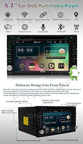 Eincar 6.2 inch Android 6.0 Car Stereo 2 Din in Dash GPS Navigation Radio Bluetooth Head Unit Phone Mirroring Dual CAM-IN WIFI Remote Control External Microphone OBD2 3G/4G(Optional)+Backup Cam