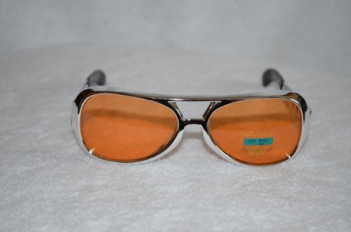(Elvis)/Accessories/Eyewear/DIRECT FROM USA/Small Orange Elvis Sunglasses with Silver Frame - Aviator Glasses