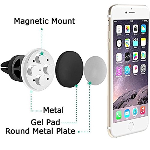 Car Mount, Universal Air Vent Magnetic Car Mount Holder for Smartphone iPhone 7 Plus 6S 6 5s 5 SE, Galaxy S8 S7 S6 Edge, Note 5 4 2 and Mini Tablets, Compatible with most Cases