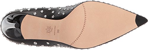 Patent leather upper with metallic stud accents.