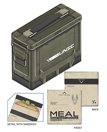 Halo 4 Ammo Crate Tin Lunch Box: Inspired by the UNSC ammo container in Halo 4, this metal box features a custom top-load ammo-style food-safe lunch tin, a unique hinge and clasp opening, and a reusable food-safe sandwich bag.