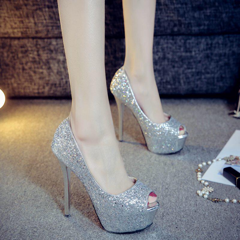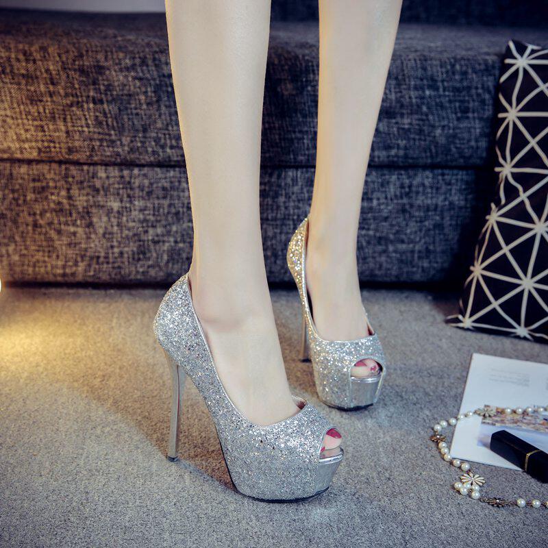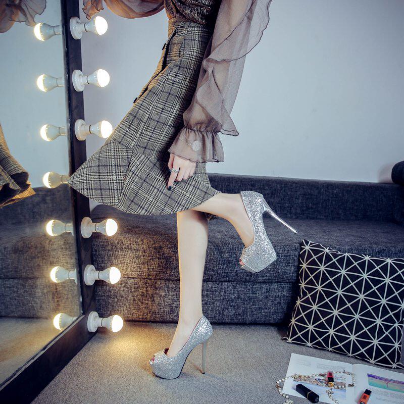 韩版春季14CM鱼嘴超高跟鞋细跟防水台女鞋性感夜店女单鞋