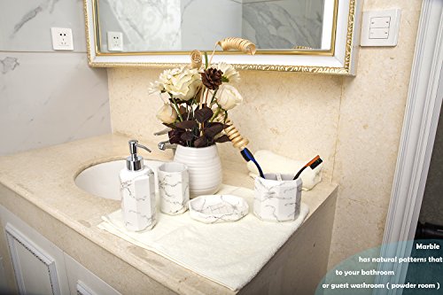 DURABLE CONSTRUCTION; made with strong resin material that is shock-proof, waterproof and does not react with any of common bathroom products. You can be sure to use these superb timeless accessories for a long time so buy so buy with confidence.