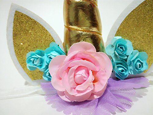 -. Title : Unicorn Horn With Flower Dressing Headband Birthday Decoration, For Fancy Dress Girl Party Decoration (Gold)