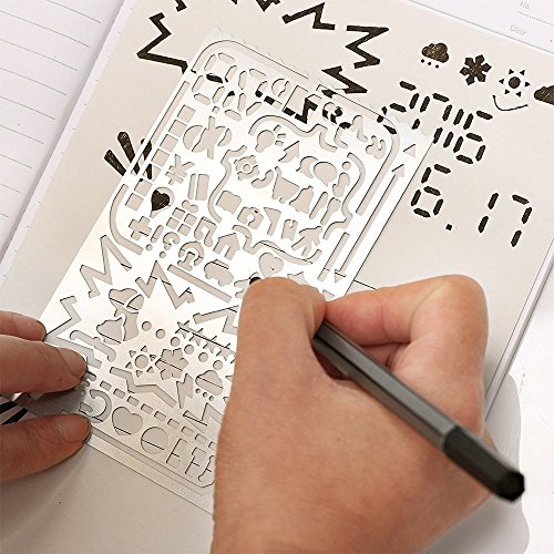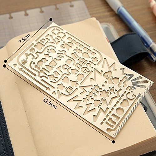 Chris.W Portable All-in-One Stainless Steel 60 Apertures Stencil Drawing Template Number Alphabet Icon Tool Diy Photo Album Accessories Ruler