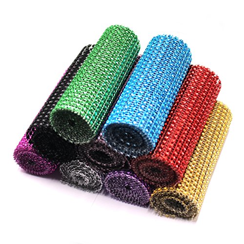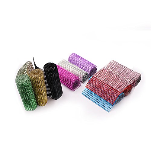 SuZhi 4.72" x 1 Yards 24 Row 9 Colors Roll Diamond Sparkling Rhinestone Mesh Ribbon for Event Decorations & Wedding Cake & Birthdays & Baby Shower & Arts & Crafts (9 colors)
