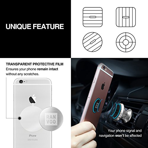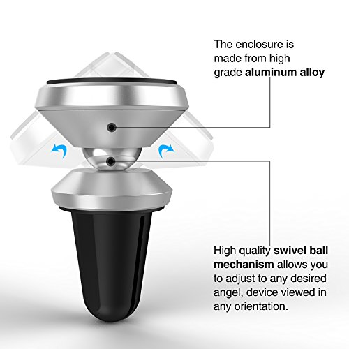 Car Mount, RANVOO Air Vent Aluminium Magnetic Holder [Update Version] [360 Degree Rotation Swivel Ball] for iPhone 7/7 Plus, Samsung/Galaxy S7 Edge, Motorola/Moto Z, Sony E6883 & GPS - Space Grey