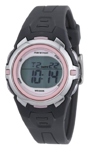 Marathon by Timex Women's T5K360 Digital Mid-Size Dark Gray/Pink Resin Strap Watch