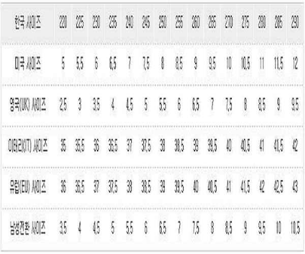 사이즈 조건표