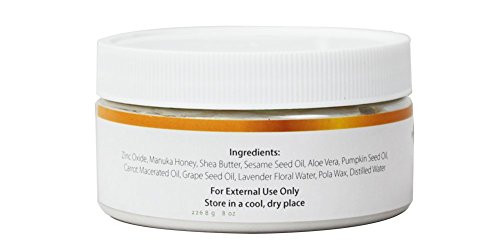 All Natural sunscreen with a 30 sun protective factor rating. Gentle on skin - has added benefits of moisturizing and rejuvenating your skin while protecting you from the sun's rays. Ingredients: Sesame seed oil, grape seed oil, zinc oxide, aloe vera, +16 Manuka honey, coconut oil, shea butter, carrot oil, pumpkin seed oil, pola wax emulsifier, distilled waterFeature