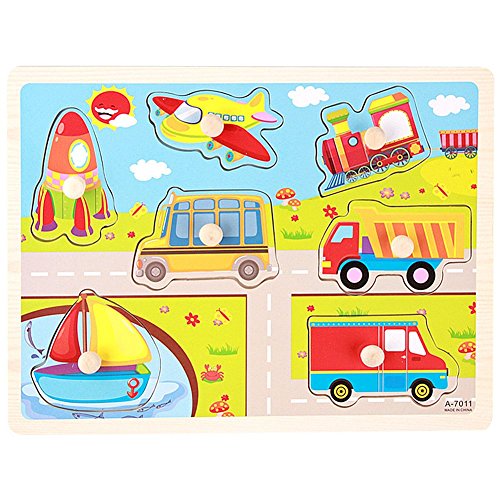 -. Title : Remeehi Educational Toys Wooden Peg Puzzles Traffic Vehicles Jigsaw Puzzles for Toddlers