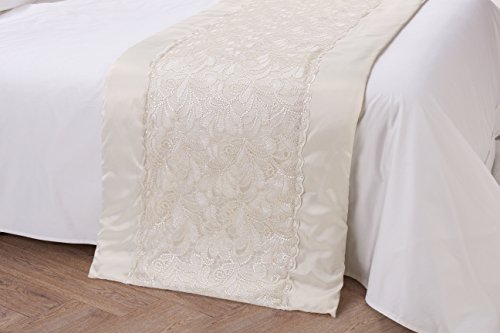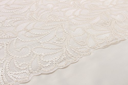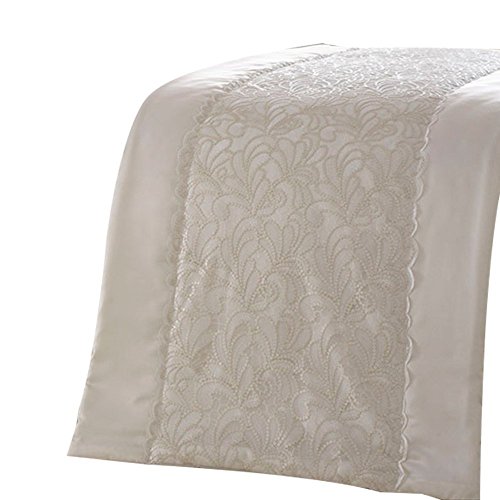 ZIGGUO Luxury Bed Runner Bedding Scarf Sequin Embroidered Size 25.6X 86.6inch, Ivory Color