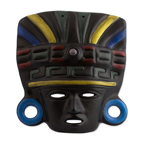 NOVICA Decorative Large Ceramic Mask, Black, 'Aztec Priest'