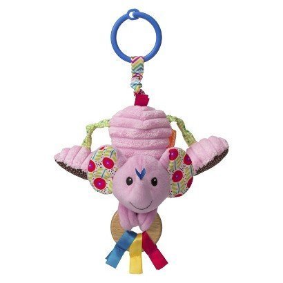 Your baby will go gaga for this soft and cuddly activity toy from Infantino. With colorful patterns and fun textures, this activity toy keeps curious and chubby hands busy. The adorable elephant toy holds a wooden teething ring with fabric tags that babies love to grab. This plush baby toy links easily to your car seat, stroller, playard and activity gym.Feature