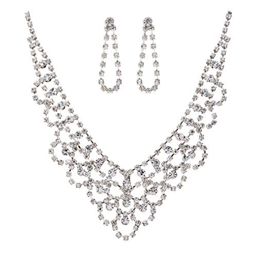 -. Title : ACCESSORIESFOREVERブライダルウェディングプロムファッションジュエリーセットネックレスクリスタルラインストーンv-drapeシルバー