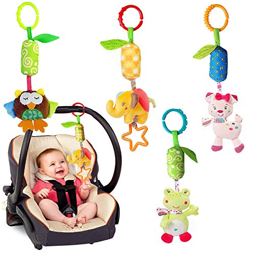 Wind bell hanging pieces of dolls, lovely cartoon shape. Gently shaking will be issued a jingle bell sound, sound crisp very nice! Doll built-in BB, exercise baby wrist strength and hearing. The toy tied to the cart or small bed, the hook is very convenient! Package content: 4 x Kids Stroller Hanging Bell (Frog, cat, elephant, owl)