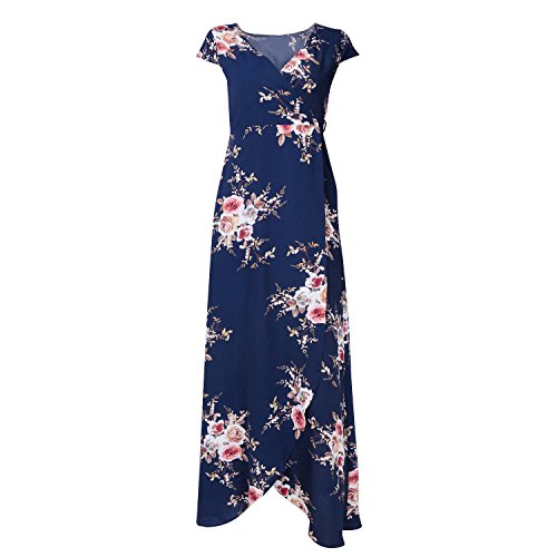 -. Feature : Lightweight fabric(95% Polyester and 5% Spandex), Flowy and cool feeling in hot summer / Vintage floral P.R.Int, Front slit, Self-tie waist for a more comfortable fit, Wrap style / Sexy deep v neck, Cap sleeve, Empire waist, Asymmetrical hem, A line / Form fitting, Full length. Summer chiffon maxi dress, Casual beach dress, Boho long dress, Wrap long maxi dress / Style with sandals or high heels, oversized hats. Boho beach chiffon long dress suits for Party, Cocktail, Wedding, Evening, Dating, Beach getaways, Cruises, Casual, Summer etc.