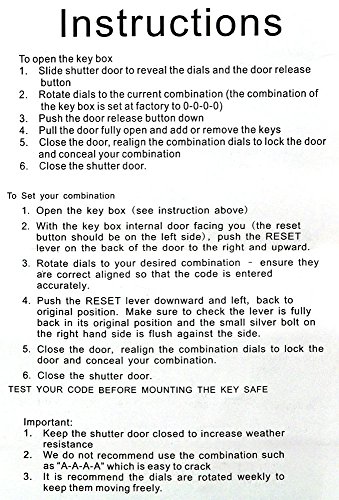 Large and secure, Store up to 5 house keys or car keys. Prevent lock-outs and provide access to your property by health aides, service technicians and pet sitters when you are at work or on vacation. Perfect solution storing keys for AirBnB rentals.