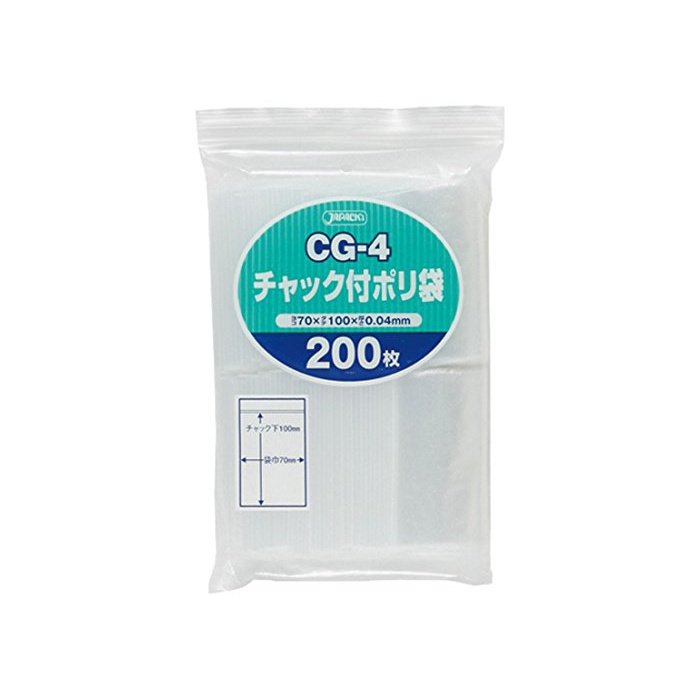 원본상품명:ジャパックス チャック付きポリ袋 無地タイプ ヨコ70×タテ100mm 透明 CG-4