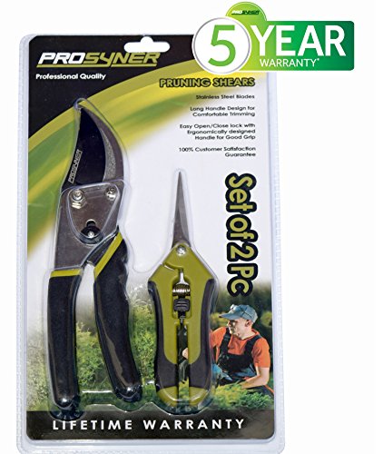 Bypass Pruning Shears Kit - Stainless Steel Gardening Hand Pruner and 1 Micro-Tip Snip Garden Clipper with Sharp Blades for Comfortable Trimming (Set of 2)