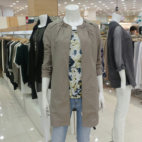 깔끔하고 세련되보이며 카라부분에 주름으로 포인트처리되어있어서 여성스럽고 귀여운 이미지도 보임