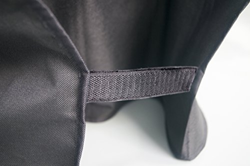 - • More Bonus Features. For snug fit and secure purpose, the cover is equipped with Velcro tie down strap at each side of the cover. For easy on and off, there is a padded heavy-duty handle at each side. The handles can be also used for storing/hanging purpose while grilling.