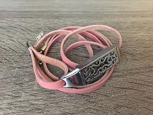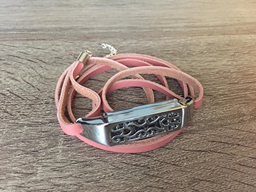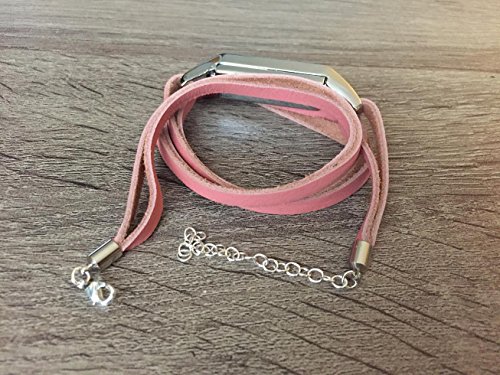 -. Title : Handmade Pink Leather Bracelet for Fitbit Flex 2 Tracker Adjustable Size 4” - 7.5" Band with Silver Jewelry Housing