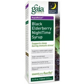 ReleaseDate : 2013-01-22 Studio : Gaia Herbs Publisher : Gaia Herbs Binding : Health and Beauty Product Description Black Elderberries have been recognized for centuries throughout Europe for their immune supportive properties. Modern research has identified potent flavonoid compounds, called anthocyanins, which may be directly related to their health promoting properties. Taken when your immune system is challenged and you need a restful night’s sleep, this NightTime Syrup, made with Certified Organic Black Elderberries, Lemon Balm and California Poppy, has a great taste and will help you rest easy. 0