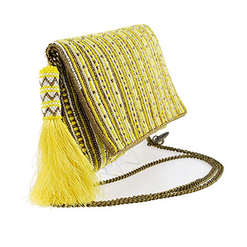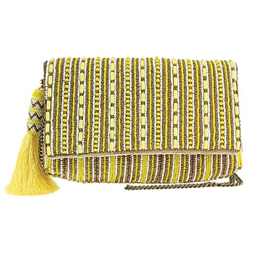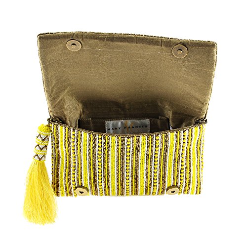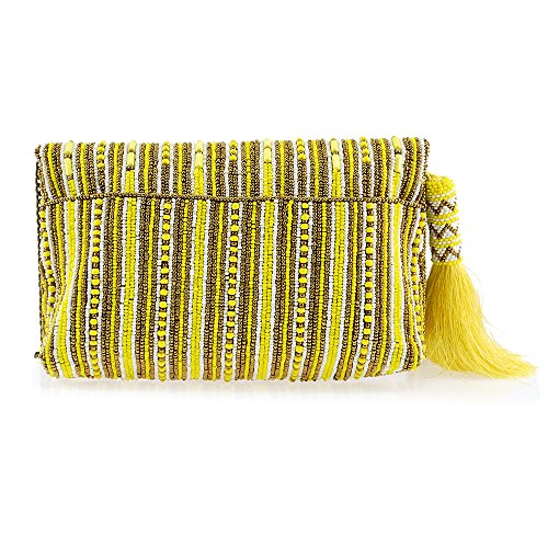 MARY FRANCES Stripe It Yellow Beaded Clutch
