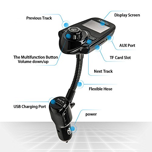AlierGo Bluetooth FM Transmitter, Wireless MP3 Player & Hands-free Calling & Radio Car Kit with USB Car Charger,TF Card Slot, AUX Input for iPhone 7 Plus 6S 5S Samsung Android Cell Phone/ Tablet