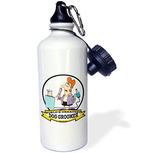 3dRose Funny Worlds Greatest Dog Groomer Women Cartoon Sports Water Bottle, 21 oz, White