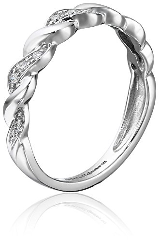 -. Feature : H/I Color, I1-I2 Clarity Diamonds / 14kt white gold / stackable ring / twisted detail / pave diamonds / Comes with Keepsake Signature branded box