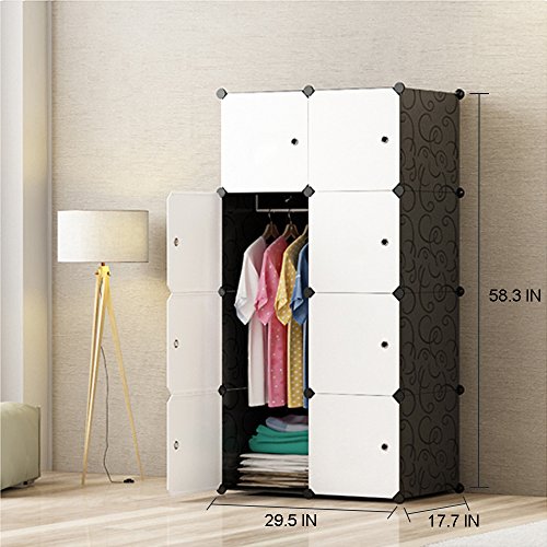 MEGAFUTURE Portable Wardrobe for Hanging Clothes, Combination Armoire, Modular Cabinet for Space Saving, Ideal Storage Organizer Cube for books, toys, towels(8-Cube)