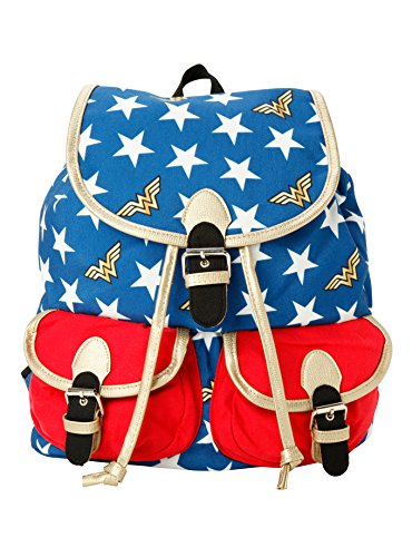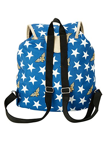 Product DescriptionBlack slouch backpack from DC Comics with Wonder Woman themed design. Snap button and drawstring closure.0