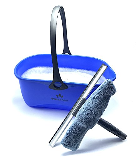 EVERSPROUT 5-to-13 Foot Window Squeegee & Scrubber Combo (20 Ft. Reach) | Extra-wide 14-inch Squeegee & Microfiber Window Scrubber | Lightweight, Aluminum Pro Pole | +EXTRA 14-inch Squeegee Blade