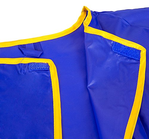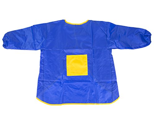 Your pint-size picasso will love dressing just like an authentic artist in this roomy, long sleeve paint smock, and parents will certainly be happy to protect kids' clothing from paint stains, spills, and splatters! our stylish smock features a cheerful and gender-neutral Blue and yellow color scheme. The large center pocket is a perfect holder for paintbrushes when not in use, and the sleeves feature cuffs to ensure they stay in place. Art tends to get messy! that's why our paint smock is crafted from 100 percent stain-resistant, washable nylon fabric. Like all CP toys products, this smock is incredibly safe and made of 100 percent BPA-free materials. Plus, cleaning is easy: simply wipe down with a damp cloth, or machine wash and air dry If needed. This smock is designed to fit most children between 3 and 6 years of age. It measures 26 inch in Length by 19 inch across the front and features a hook and loop fixture in the back.Feature
