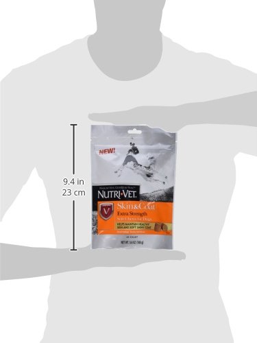 Nutri-Vet skin and coat extra strength soft chews contain omega-3 fatty acids from fish oil and other nutrients that help dogs achieve a soft, silky and shiny coat as well as reduce unwanted shedding. Savory fish flavor soft chews are delicious and easy to give. The skin is the body’s largest organ system. It protects an animal from injury and infection, helps control internal temperature, and serves as a reservoir for certain nutrients. The hair coat insulates the body and shields the skin from injury due to sunlight, heat and irritants. The health of the skin and quality of the hair coat are affected by a dog’s diet, lifestyle, environment, genetics and care. It is clear that nutrients and nutrient levels have a direct impact on skin and coat health. Because each animal has specific and individual needs, feeding even well balanced, premium foods may not be enough to optimize skin and coat condition. Omega-3 fatty acids such as DHA (Docosahexaenoic acid) and EPA (Eicosapentaenoic acid) help reduce inflammatory skin reactions in dogs. These two important fatty acids are found in high levels in fish oil. Only omega-3 fatty acids in fish oil have been shown to reduce inflammation. Vitamin a is a fat-soluble antioxidant needed for maintaining normal skin, preventing eye problems and enhancing immunity. A deficiency of vitamin a can cause skin lesions, including dryness and cracking of the skin. Vitamin e is a fat-soluble antioxidant that protects cell membranes from oxidation by free radicals and promotes healthy skin and hair. Biotin is needed for a healthy skin and coat. It also plays an important part in metabolizing energy and aids in cell growth, fatty acid production and utilization of other b vitamins and proteins.Feature