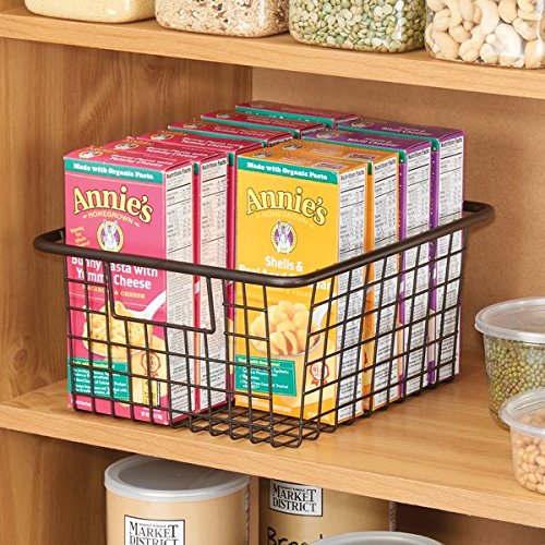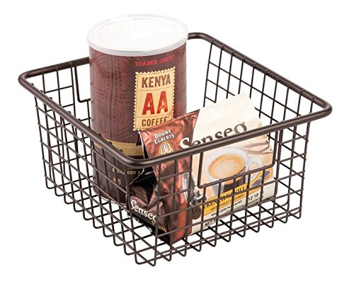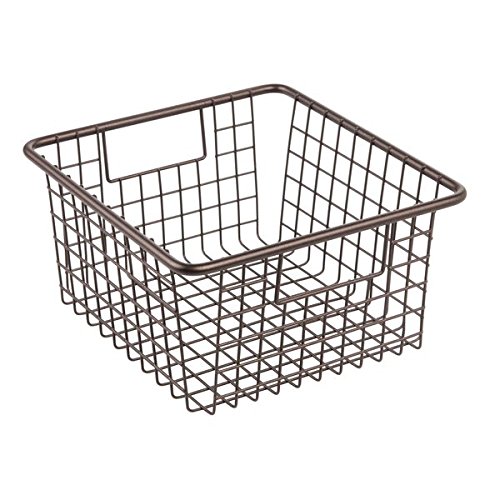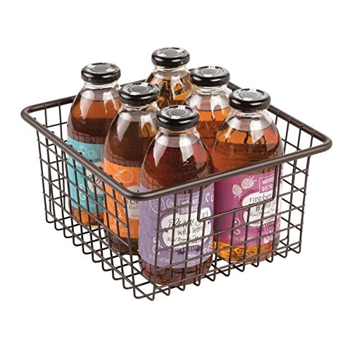mDesign Kitchen Wire Storage Basket with Handles for Kitchen Cabinets, Pantry - Medium, Bronze