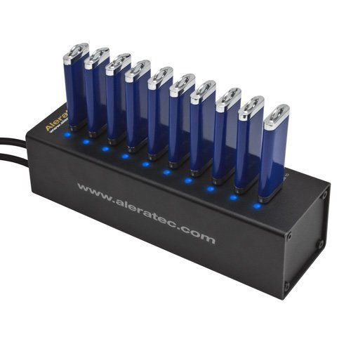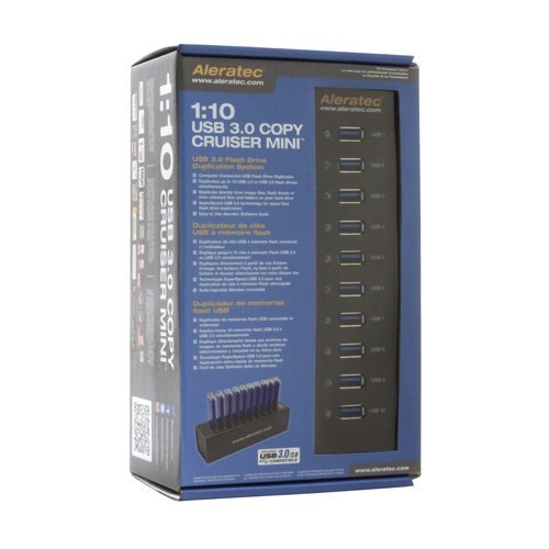 Aleratec's 1:10 USB 3.0 Copy Cruiser Mini is a computer connected USB flash drive duplicator that quickly copies up to 10 USB flash drives simultaneously, yet is small enough to fit inside a briefcase or laptop bag for quick changes on the go. With read/write speeds up to 5 gigabytes per second and SuperSpeed USB 3.0 duplication, 1:10 USB 3.0 Copy Cruiser Mini produces fast and highly accurate flash drive clones and is easy to setup and operate. The 1:10 USB 3.0 Copy Cruiser Mini also includes Aleratec's easy-to-use Software Suite for Windows and Mac that gives users multiple choices for collecting and duplicating data. Once installed on your laptop or desktop computer, Aleratec's Duplication Software Suite becomes a powerful tool that gives you a choice on how you want to collect and duplicate data. Duplicate directly from image files or a flash drive or duplicate from selected files and folders on their hard drive. The software's display shows the status of each copy, number of copies completed and allows users to select Copy Only, Format Only, Format and Copy, Create Image and Image Copy. The software also supports bootable flash drives the ability to format-only or format and data copy FAT/FAT32/NTFS.Feature