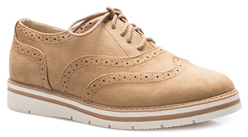 -. Binding : Apparel -. Brand : OLIVIA K -. Department : womens -. Feature : Heel Height approximately 1.25" Platform measures approximately 0.75" | True size to fit. But we suggest ordering a half size bigger for wide width customers / These rounded toe oxfords are here to turn up your style! Pair these with slacks and a blazer and let your edgy style shine through. / The low heel of these oxfords will have you walking around with ease and looking stylish at the same time. / Oxfords have rounded toe and feature a traditional lacing up details giving you that unique look you've been looking for. / Versatile oxfords are a classic when it comes to styling. Slip these on and they'll be a perfect fit for your next ensemble. -. ProductGroup : Shoes -. ProductTypeName : SHOES -. Title : OLIVIA K Women's Lace Up Reflective Leatherette Upper - Rounded Toe Low Top - Platform Wedge Oxford
