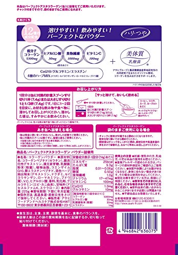 ● [Product Description] ● "Perfect Application collagen powder Refill 225g" is a low molecular weight collagen hyaluronic acid dietary fiber is a powder of vitamin C formulations. ● In addition CoQ10 glucosamine elastin also formulated. ● easy to melt is perfect for easy to drink powder in a variety of drinks. ● [How to use] ● 7.4g (the measuring spoon Strike sugar 1 cup that comes with the can) as a guide per day please enjoy dissolved in your favorite drink. ● After dissolving please drink as soon as possible. ● If re packed to Perfect Application collagen autumn cans ● cans to clean used up completely please use in the dry state. ● to not discard the spoon that comes in a can please use after refilling. ● * Refill the contents of the can before Please check that it is empty. ● * Please do not mix with other products. ● * after Refill should be stored in tightly closed lid of the can as much as possible as soon as possible please enjoy. ● If it remains your Perfect Application collagen bag ● it will be difficult to close the powder to the chuck is attached please close from Remove the flour. ● After firmly close the chuck opening direct sunlight or high-temperature multi ...