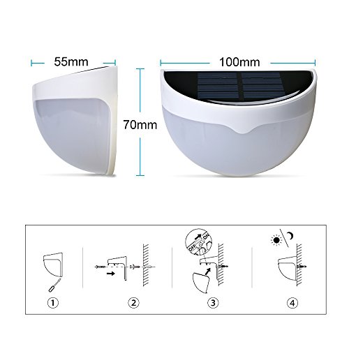 - IP55 waterproof for all weather usage. This solar wall light is suitable for Garden, Patio, Pathway, Driveways, Stairway, Deck.