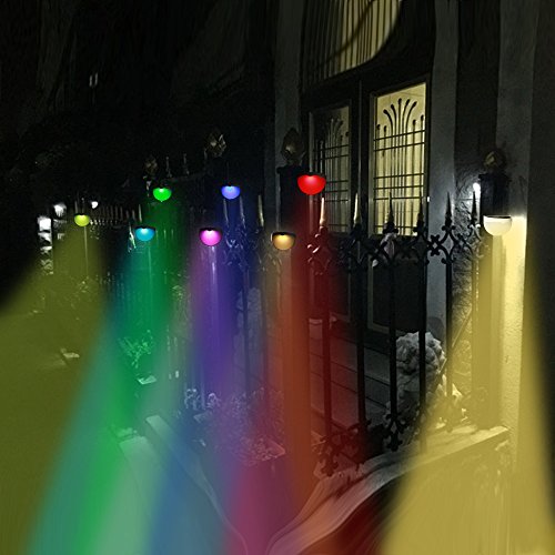 HUANLEMAI Solar Fence Post Lights Outdoor Solar Powered RGB LED Garden Light Wall Mount Decorative Deck Lighting for Pathway Back Yard Patio Stairway Driveways (7 Colors Changing, 4 Packs)