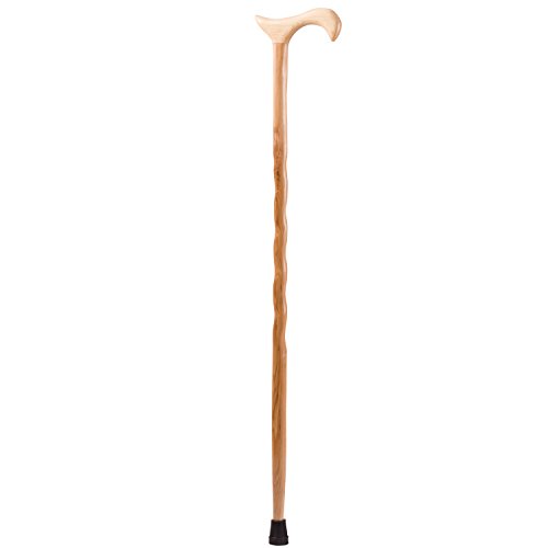 ReleaseDate : 2017-04-03 Studio : Brazos Publisher : Brazos Binding : Health and Beauty Product Description Brazos Walking Sticks Twisted Hickory Wood Derby Walking Cane With our trademark twist spiraling down its shaft, our Twisted Hickory Walking Cane is not only functional, but an expertly crafted work of art. With its rustic beauty complimented by its majestic twist, this cane is the ideal companion for nearly any occasion. Hickory's strength and flexibility make this a choice cane for those seeking a solid, sturdy walking aid. You will feel safe and secure with such a strong companion at your side. Each cane also comes with a rubber tip for a secure grip on virtually any surface. Like all of our finely crafted walking sticks and canes, the Twisted Hickory Walking Cane is made in the USA by our skilled craftsmen using the highest quality wood and time-tested methods. Made in America, One at a Time Unlike sterile, lifeless metal canes and poles, Brazos walking canes offer natural appeal because they are made from real wood. You can see the fine detail and beauty of the actual tree when you look at one. Each cane is a work of art. Plus, because they are solid wood, there are no moving parts to become unstable. Brazos Walking Sticks is family operated and located in the beautiful Brazos River Valley of Central Texas. Each walking stick is handcrafted by skilled local craftsmen. How to Size a Walking Cane For walking canes, a standard 37-inch size is a good starting place for most adults. For taller folks, we offer 40-inch canes as well. If you are shorter, we offer 34 inch canes, too. Cane sizing is best achieved by standing up straight, relaxing your arm naturally to the side, and having someone measure the distance from your wrist to the floor. A good cane size should allow for an elbow that is slightly bent. 0
