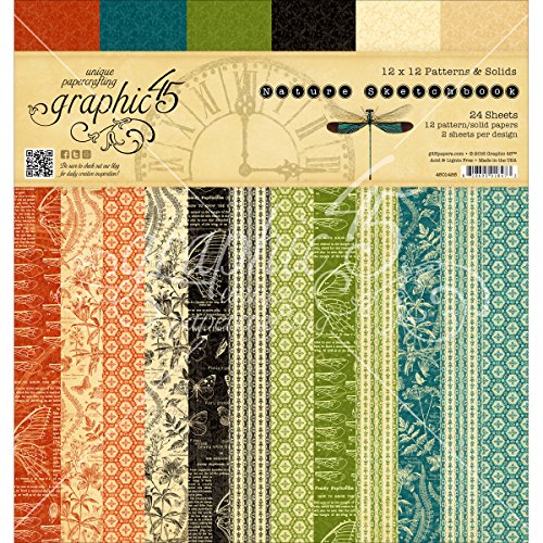 Graphic 45 4501486 Nature Sketchbook 12 x 12 Patterns & Solids Pad