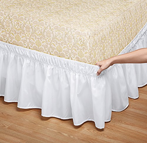 Product Description Don't lift that heavy mattress! There's no need to risk hurting your back every time you need to clean your bedskirt. Our innovative oh-so-easy stretch bed skirt in easy-care, wrinkle-free polyester slips effortlessly around the mattress and box spring - no heavy lifting involved! Features a fully ruffled 15" drop for a luxurious look and feel. Imported. Gentle wash. 0