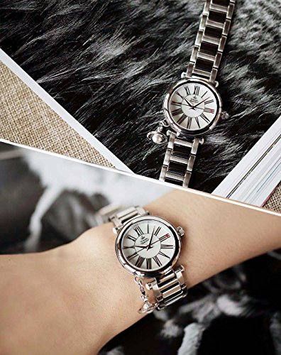-. Binding : Watch -. Brand : -. Color : Mother Of Pearl -. Department : womens -. EAN : 5013348612670 -. Feature : Round watch with Roman numeral indices against mother of pearl face featuring orb charm and red-tipped second hand / 32 mm stainless steel case with mineral dial window / Swiss quartz movement with analog display / Stainless steel band with jewelry clasp / Water resistant to 50 m (165 ft): In general, suitable for short periods of recreational swimming, but not diving or snorkeling -. Label : -. Manufacturer : -. Model : VV006PSLSL -. MPN : VV006PSLSL -. PackageQuantity : 1 -. PartNumber : VV006PSLSL -. ProductGroup : Watch -. ProductTypeName : WATCH -. Publisher : -. Studio : -. Title : Women's VV006PSLSL Orb Mother of Pearl Silver Analog Display Swiss Quartz Watch