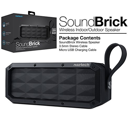 Naztech Sound Brick Portable IPX6-Waterproof/Dustproof, Outdoor/Indoor Wireless Bluetooth Speakers V4.0 with Built-In Microphone, 30W Output Enhanced Bass Stereo Sound for All Bluetooth Devices