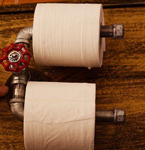 Give your bathroom a touch of charm with this handsome toilet paper holder crafted of rugged steel pipes. Brushed down to bare metal and sealed with a clear coat lacquer